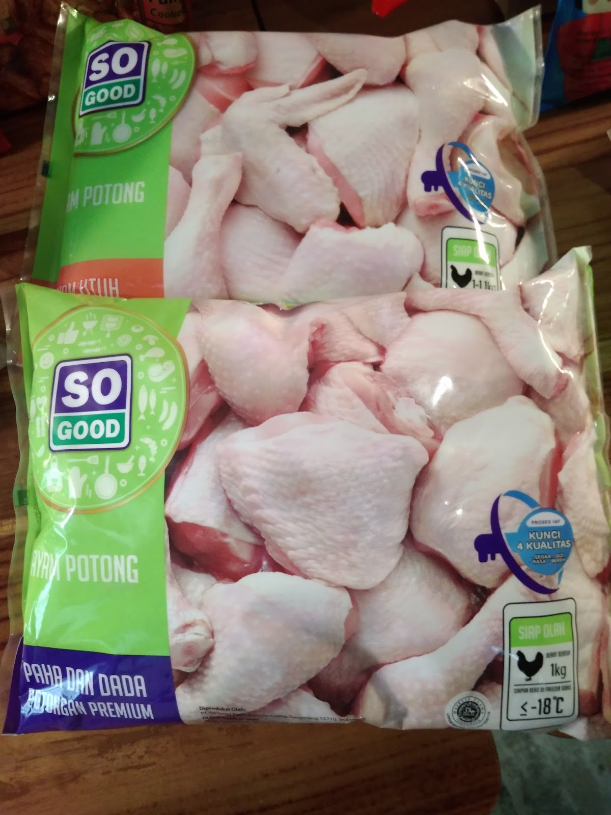 So Good juga sangat cermat dalam menggunakan teknologi untuk memproses semua bahan-bahan protein untuk produk-produk So Good. Teknologi yang dipakai untuk memproses ayam potong, So Good menggunakan teknologi IQF ( Individual Quick Frozen ) yaitu teknologi proses pembekuan individu dalam waktu 45 menit pada suhu -35°C sehingga mengunci 4 kualitas yaitu : Segar, Gizi, Rasa dan Bersih. Kualitas kesehatan So Good ayam potong ini terlihat dari warna dagingnya yang merah muda ( pink ), kenyal, tidak amis dan praktis langsung di olah, tidak perlu di potong-potong dan di cuci lagi.
